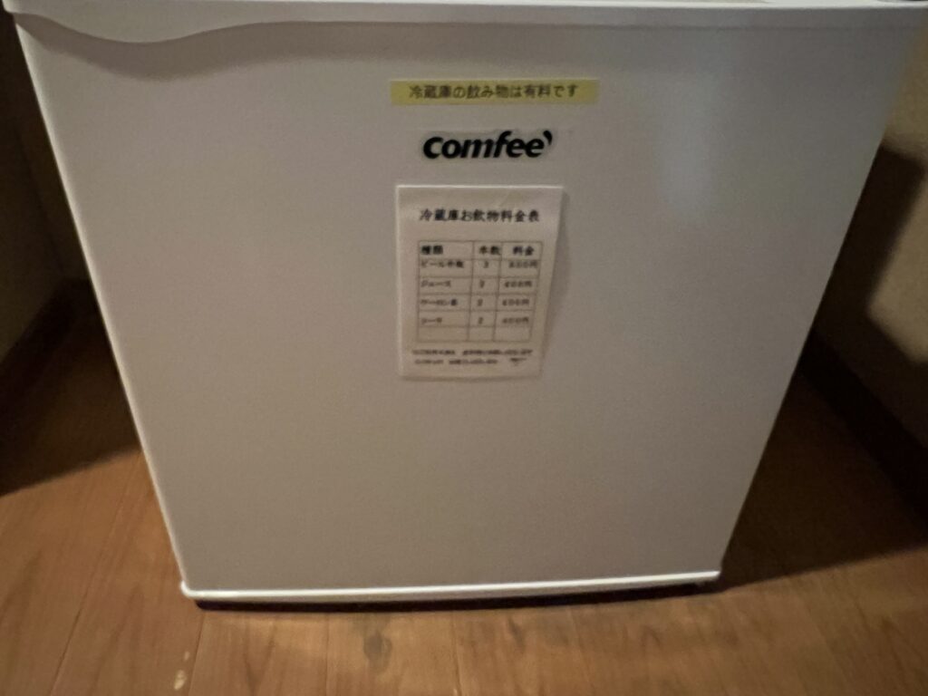 部屋に設置してある冷蔵庫の中に飲み物がありますが、有料になります。