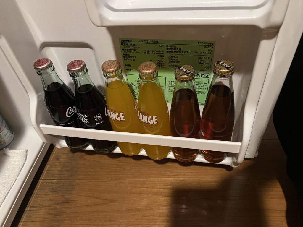 近い訳ではないので、もし必要であれば事前に買っていくことをおすすめします。(部屋への飲み物持ち込みは可能)