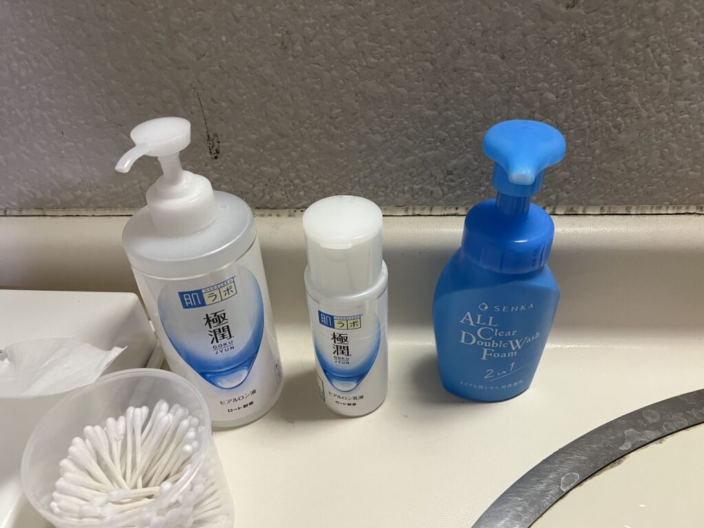 脱衣所には化粧水・乳液・メイク落とし+洗顔がありました。(女湯)