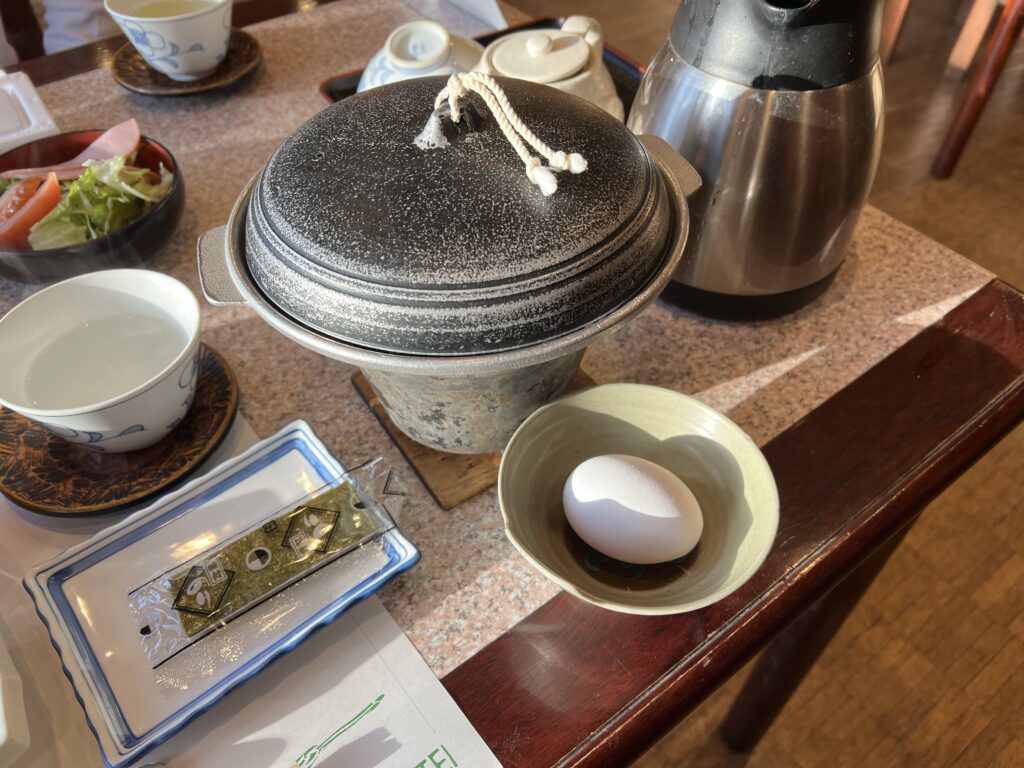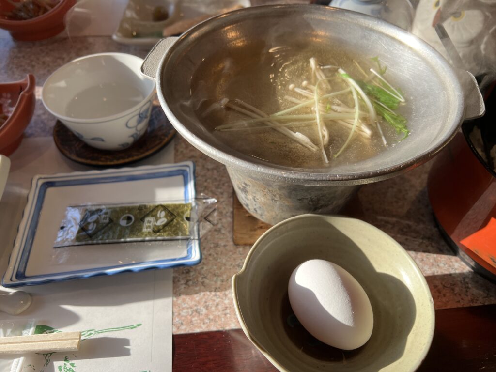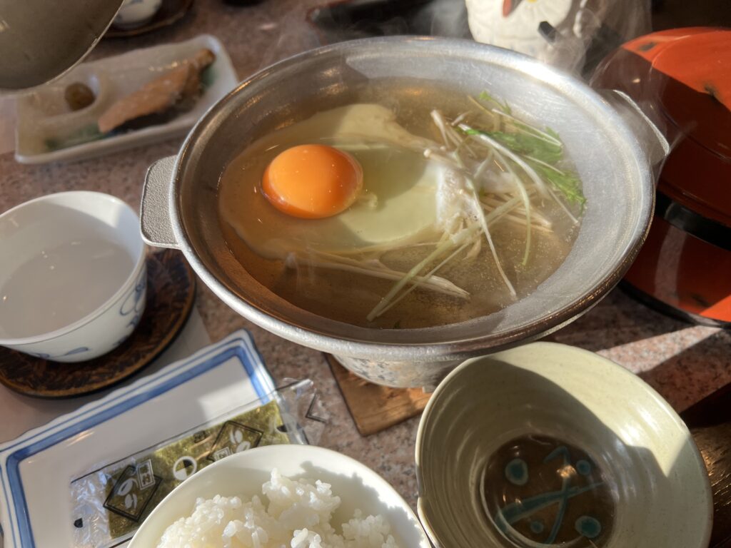 小さな鍋にはだし汁が入っており、卵をいれて自分の好きな火加減、方法(崩さずに目玉焼き風や、崩してスクランブルエッグ風など)で食べて下さいとの事です。